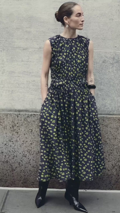 Nora Printin Lemon Navy Floral Print