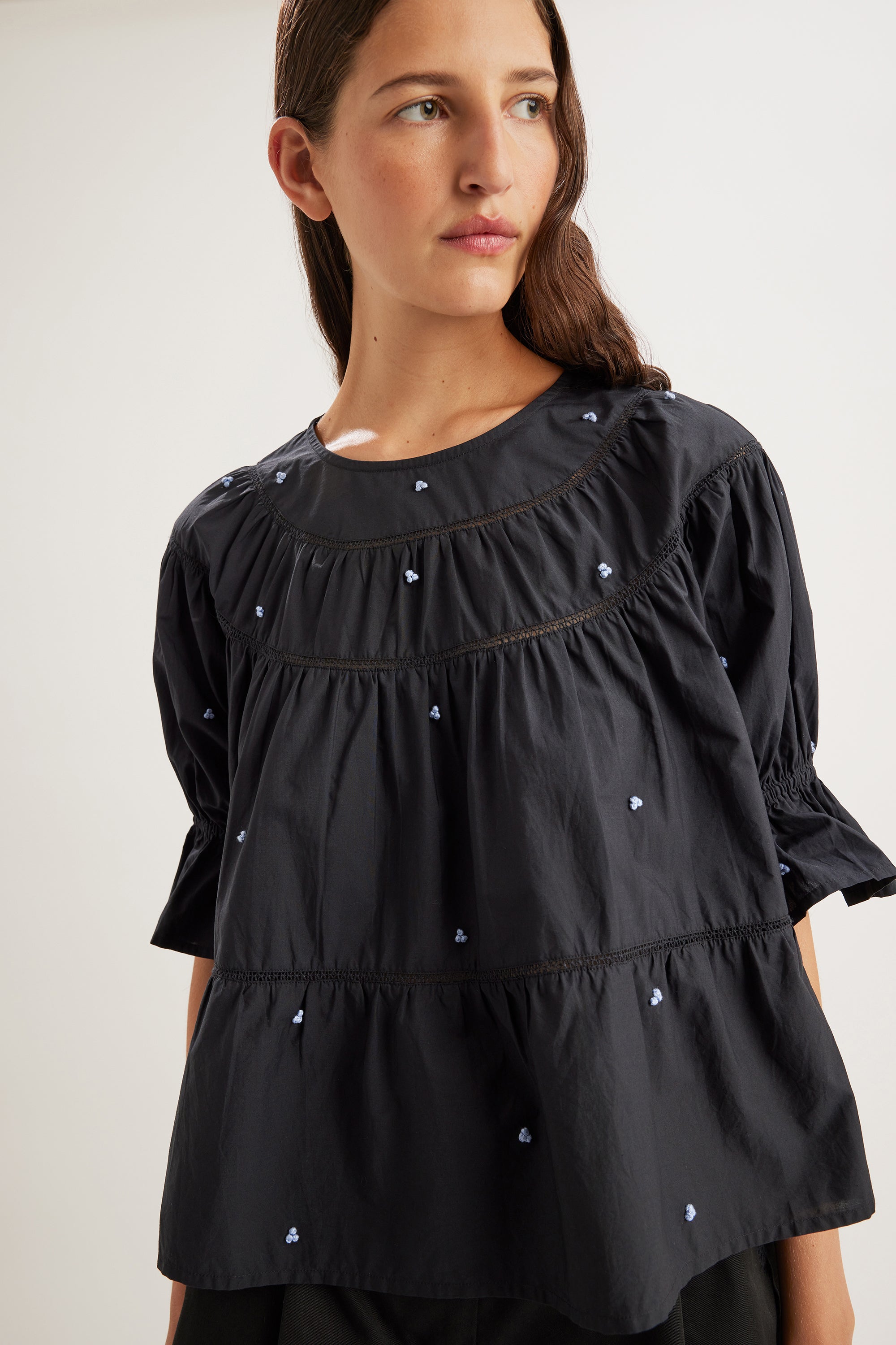 The ESSAOUIRA is a signature style with a round neck and minimal yoke and sleeves. Its tiered body, decorated with fine crochet lace trim, creates volume and movement. A mid-length offering, is it perfect for Winter layering as well as worn alone in the warmer months. Crafted in smooth 100% Pima cotton lawn.