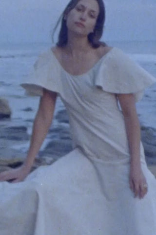 A study in modern elegance, the LIBERTÉ Dress embodies minimalist sophistication with thoughtful detailing. Crafted in luminous ivory silk taffeta, this ankle-length silhouette is tailored with sculpting princess seams for a flattering fit. Godet inserts at the hem create soft, fluid movement, while draped flutter sleeves add a touch of romance. Understated yet dramatic, a refined scoop neckline and an open back lend an effortless allure, making this piece perfect for transitioning from ceremony to celebration, and all in between.